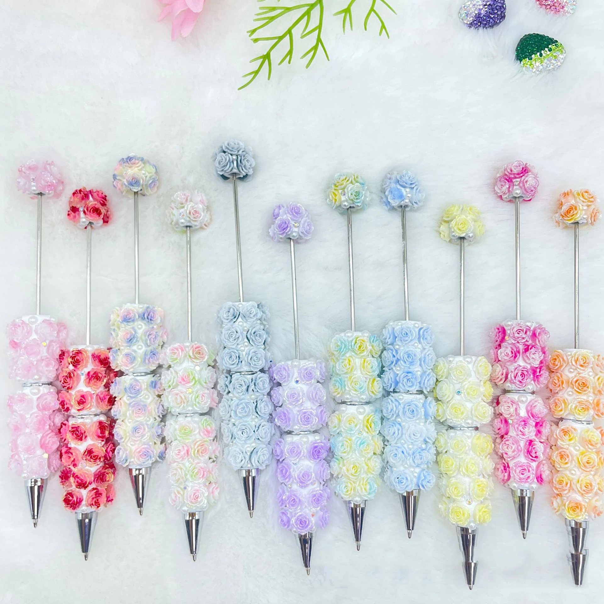 20Pcs Pearl Rose Beaded Pen Supplies Creative Handmade DIY Cute Beaded Ball Pen Office School Children Stationery Kids Gift