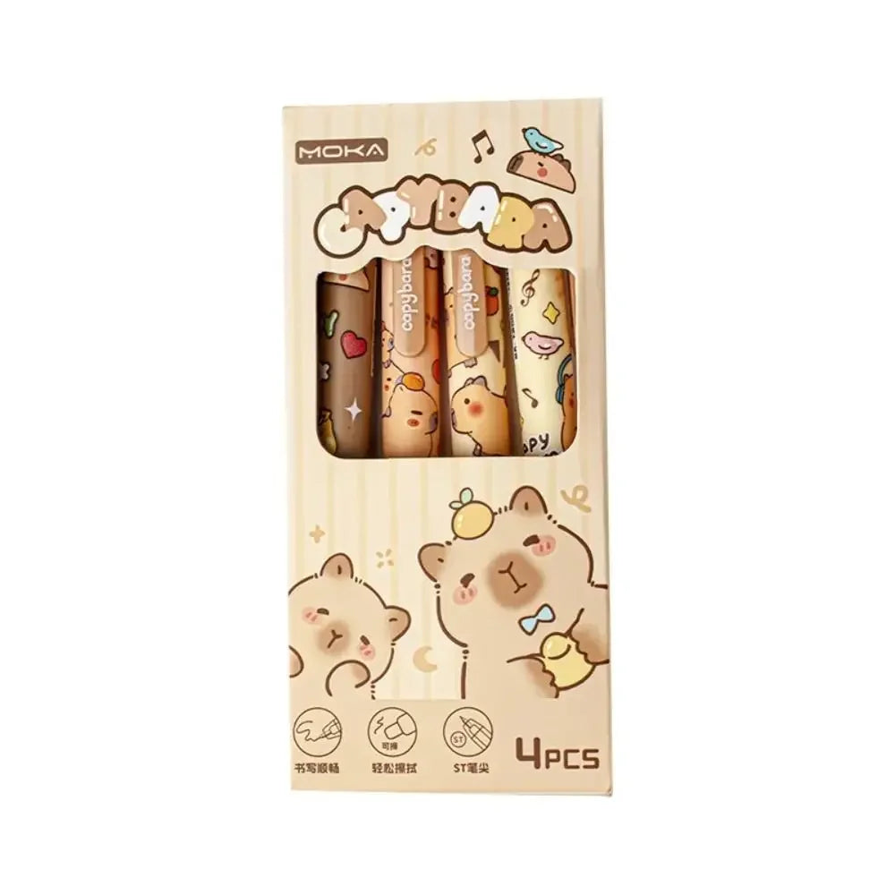 4Pcs Cartoon Capibara Erasable Pencil Gradient Sponge Neutral Press Move Pen Elementary School Blue Pen Erasable Pen