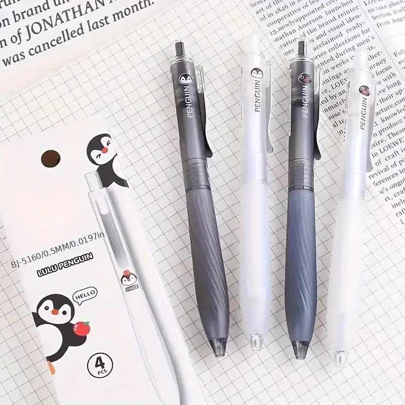 4pcs Penguin Gel Pens 0.3Mm Fine Tip, Smooth Writing, Durable And Comfortable, Suitable for Office And Study Use