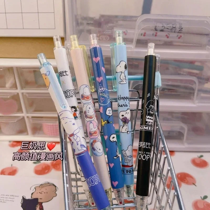 6pcs Snoopy Neutral Pen 0.5mm Black Water Pen for Writing Notebooks Girls CuteSchool Office Supplies Accessories Stationery Gift