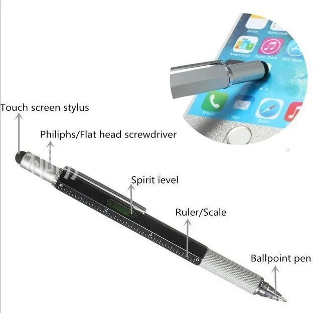7 In1 Multifunction Ballpoint Pen with Modern Handheld Tool Measure Technical Ruler Screen Stylus Screwdriver Touch Spirit Level