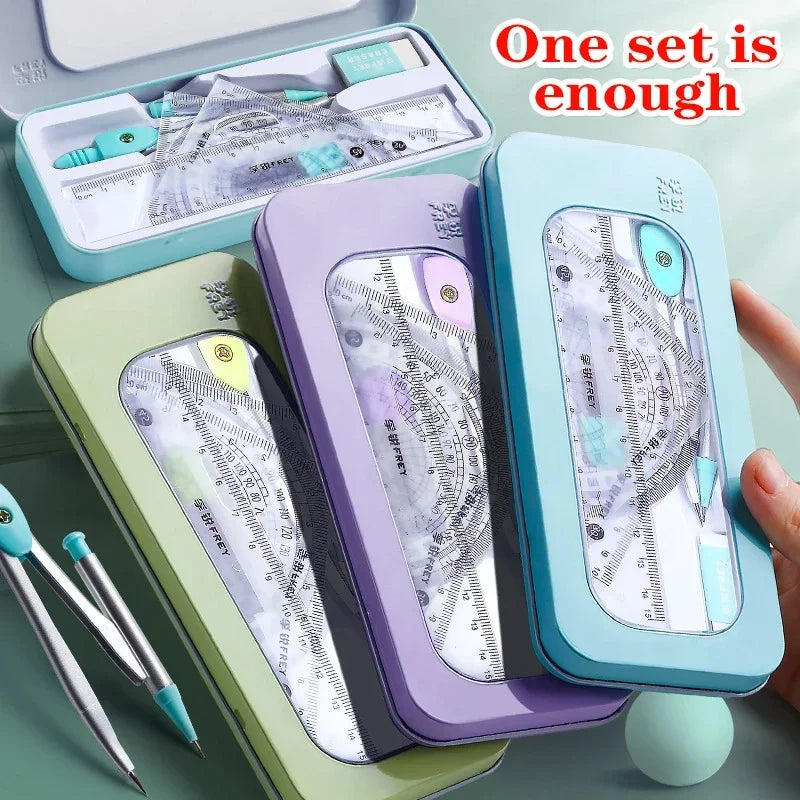 7 PCS Compass and Ruler Sets Triangle Ruler Protractor Rubber Student Exam Specific Ruler Box Set Ruler Set School Starts