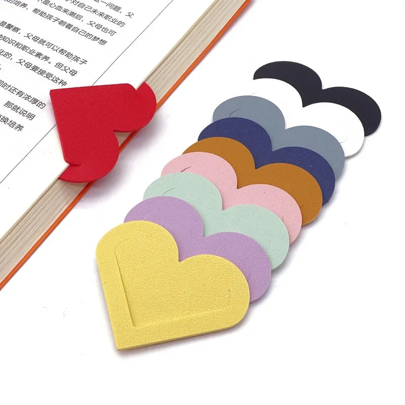 Heart Shaped PU Leather Bookmark Colorful Double Sided Tablet Gift for Book Lovers Readers and Diary Lovers