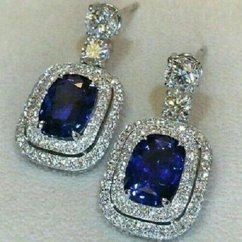 Huitan New Trendy Blue CZ Earrings for Women Bling Bling Ear Dangle Accessories Temperament Elegant Wedding Jewelry Wholesale