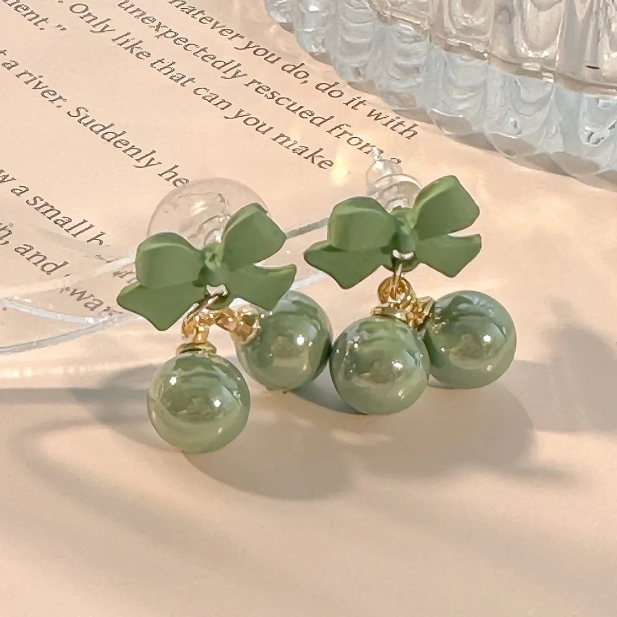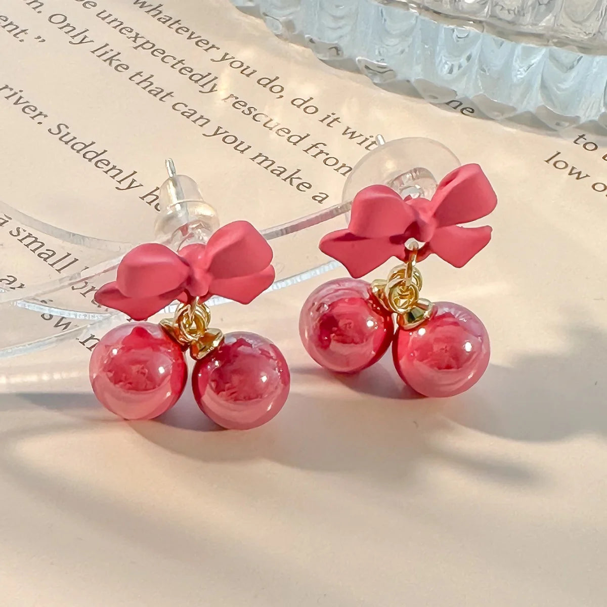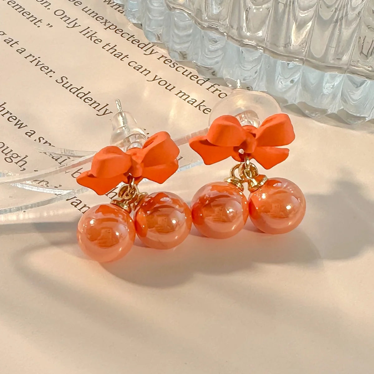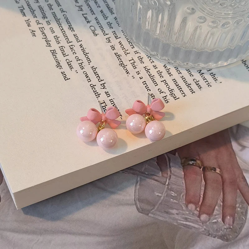 Super Sweet Pink Bow Earrings S925 Silver Needle Sweet Girl Heart Candy Bead Earrings Summer Fresh Earrings