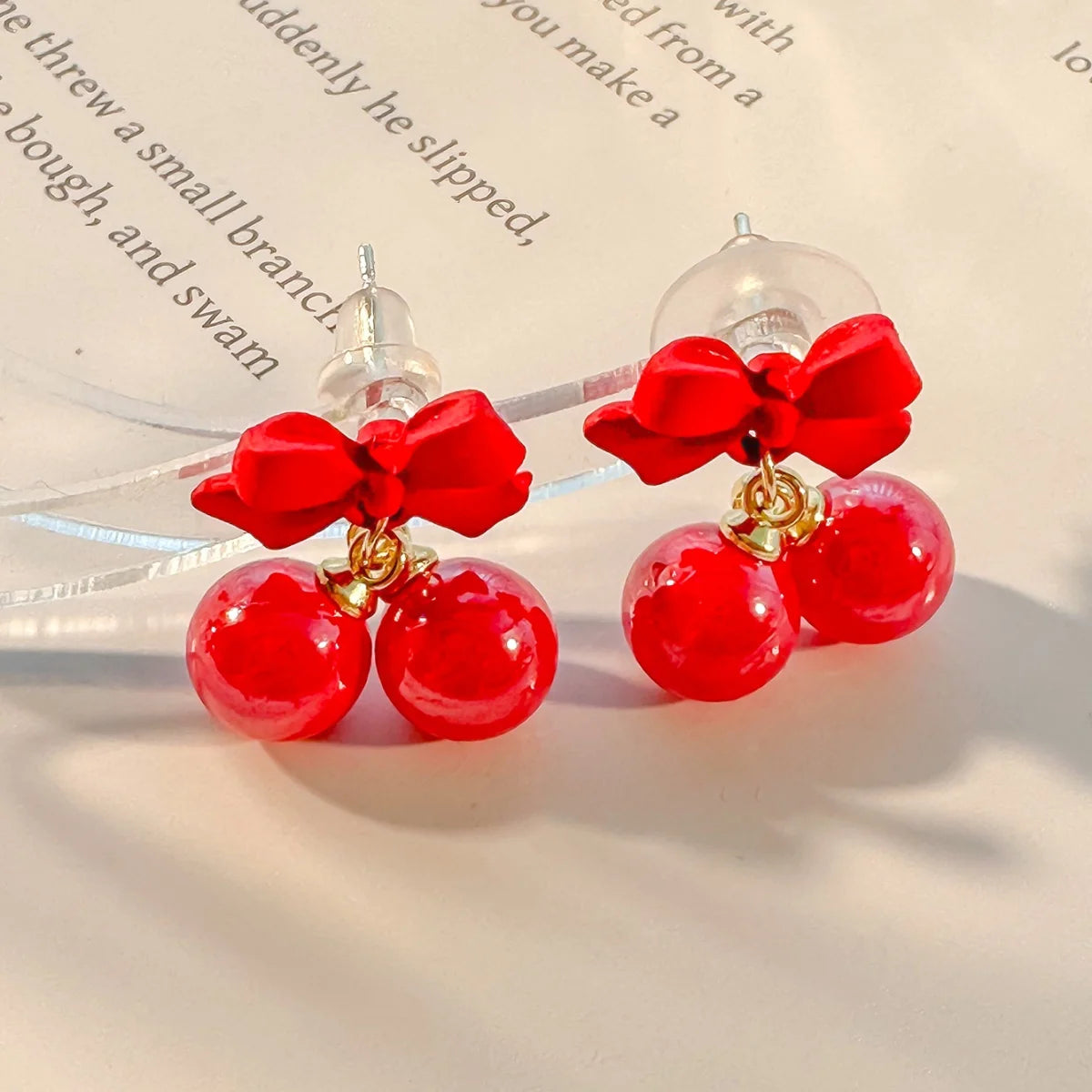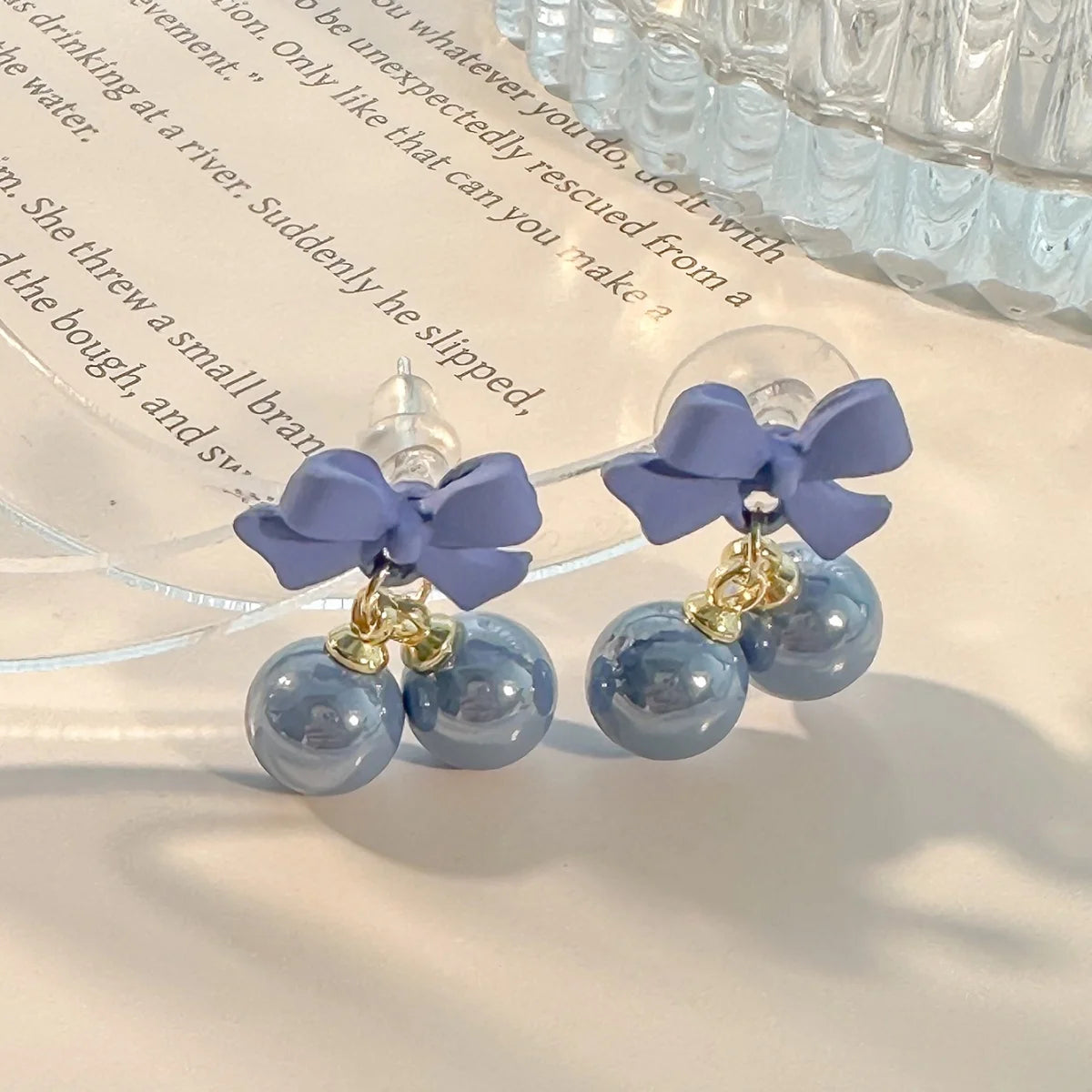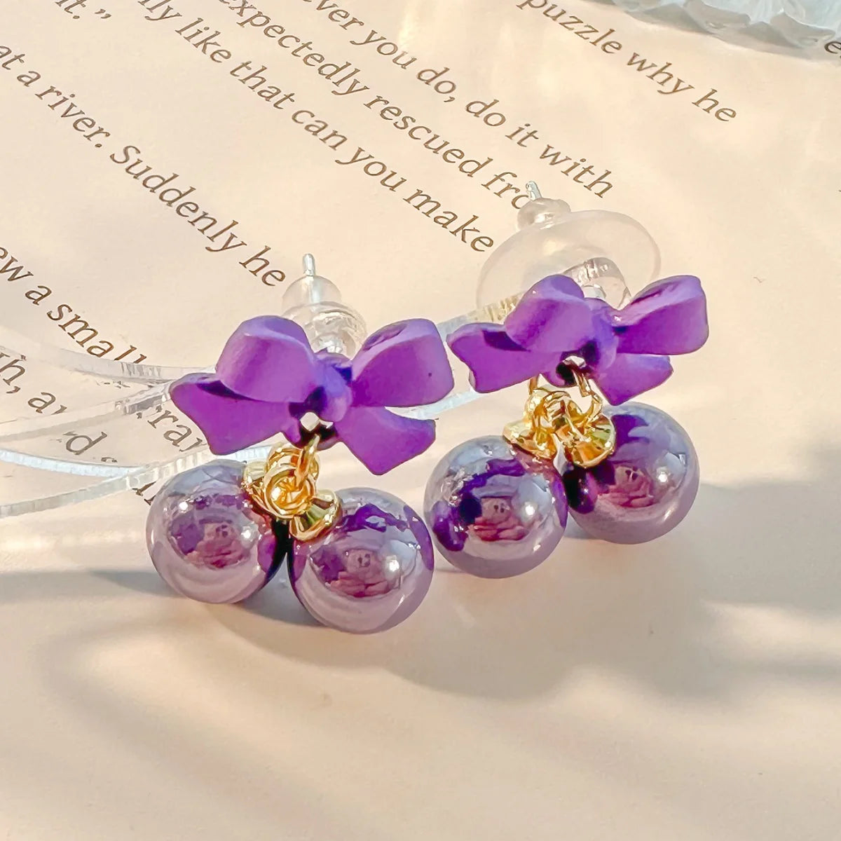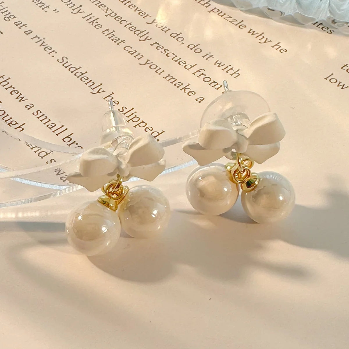 Super Sweet Pink Bow Earrings S925 Silver Needle Sweet Girl Heart Candy Bead Earrings Summer Fresh Earrings