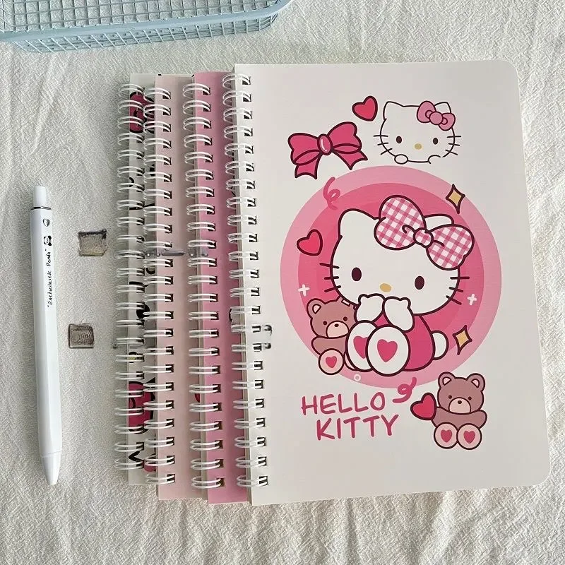 Three Liou Coil Notebook Hello Kitty Spiral Book 4/Set A5 Diary Sketching Book School Supplies Stationery Scribed Diary